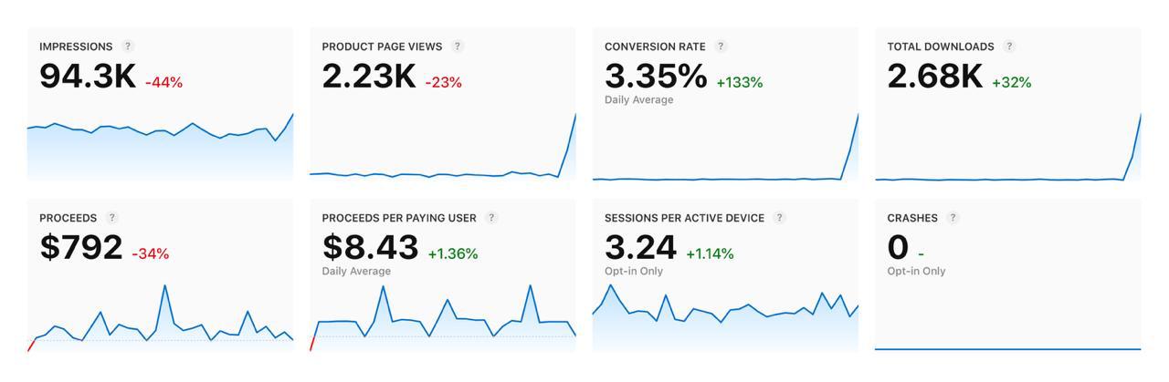 с приложением передаётся исходный код проекта, Бэкенд (включая доступ к API и возможность переноса на сервер покупателя), настройки и документация по интеграции. Рост и позиции приложения достигнуты за счёт ASO-оптимизации. Бэкенд обеспечивает все основные функции (обработка запросов, хранение данных и взаимодействие с API). Дохода — подписки и встроенные покупки. Есть возможность осуществлять поддержку после передачи в течении 2 недель.