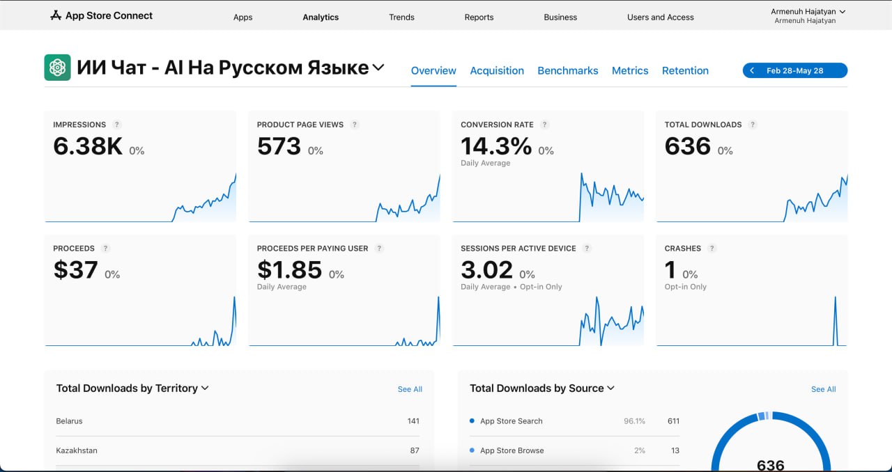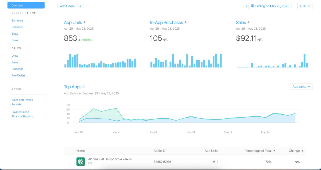 органика Доход за Май ~90$ Месячные расходы: $15–20 (API) Передача приложения трансфером.