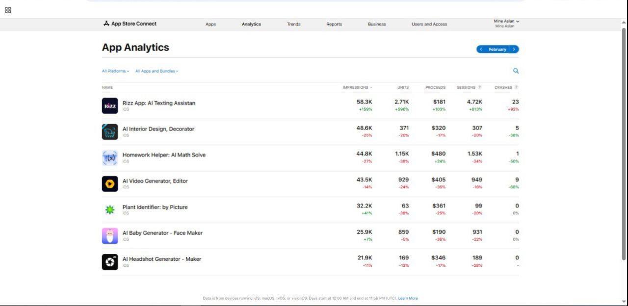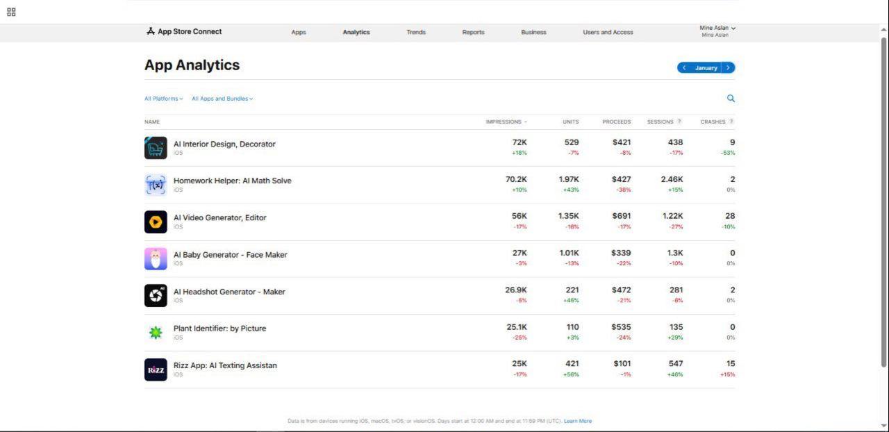 iOS account + 7 apps
