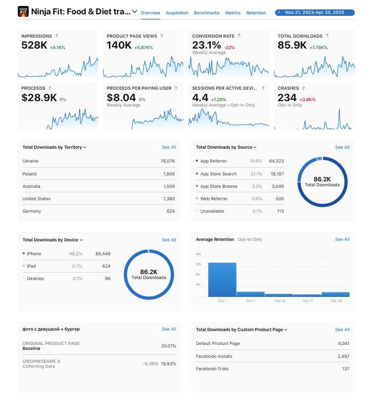 с проектом передается https://ninjafit.app/en/, бекенд, инстаграм/тикток, фб аккаунт вместе с настроенными воронками + десятки качественных UGC креативов под разные локализации. Передача приложения трансфером.