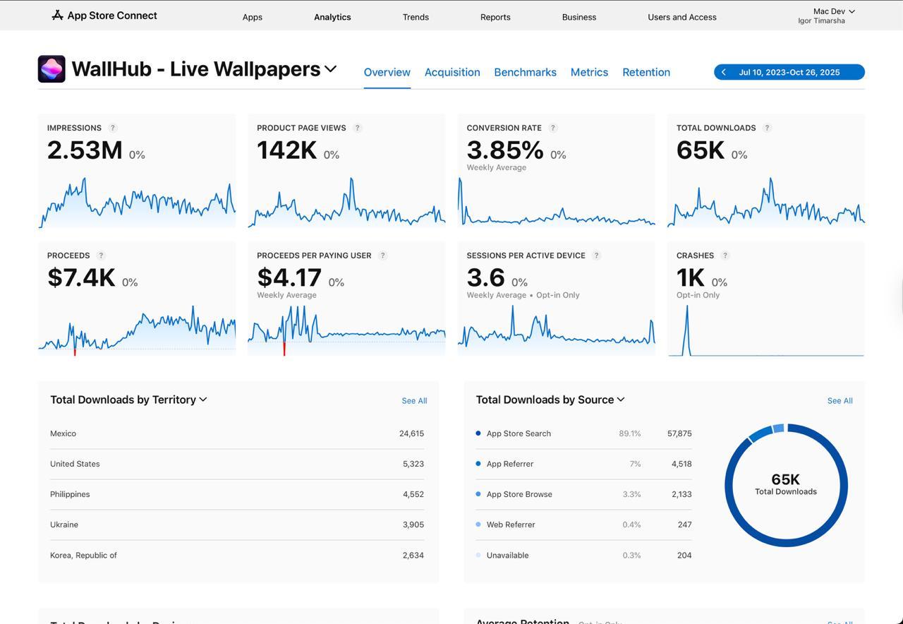 с приложением передаётся исходный код проекта. Запускалась рекламная кампания Apple Search Ads по гео Мексика для привлечения трафика и тестирования подписок. Серверная часть отсутствует, всё хранение — через Firebase Storage.